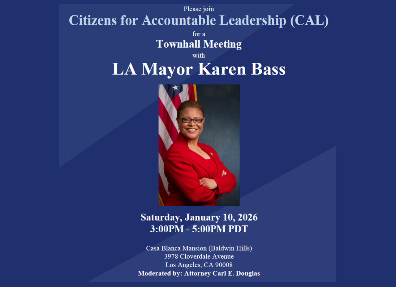 The townhall meeting Moderated by: Attorney Carl E. Douglas will take place on Saturday, January 10, 2026 from 3:00 p.m. until 5:00 p.m. at: